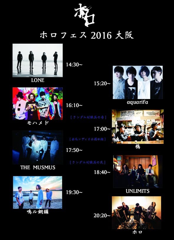 ホロ/鳴ル銅鑼/モハメド/UNLIMITS 鴉/THE MUSMUS/aquarifa/LONE