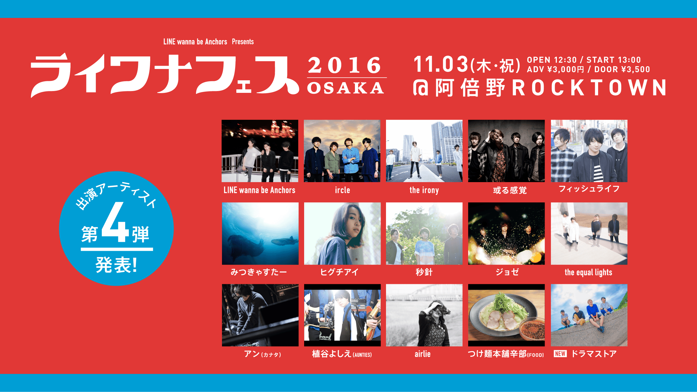 LINE wanna be Anchors/ircle/the irony/或る感覚/フィッシュライフ みつきゃすたー/ヒグチアイ/秒針/ジョゼ/the equal lights アン(カナタ)/植谷よしえ(AUNTIES)/airlie/ドラマストア
