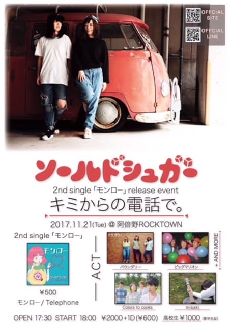 open.17:00/start.18:00 adv.¥3,000/door.\3,500(D別¥600)