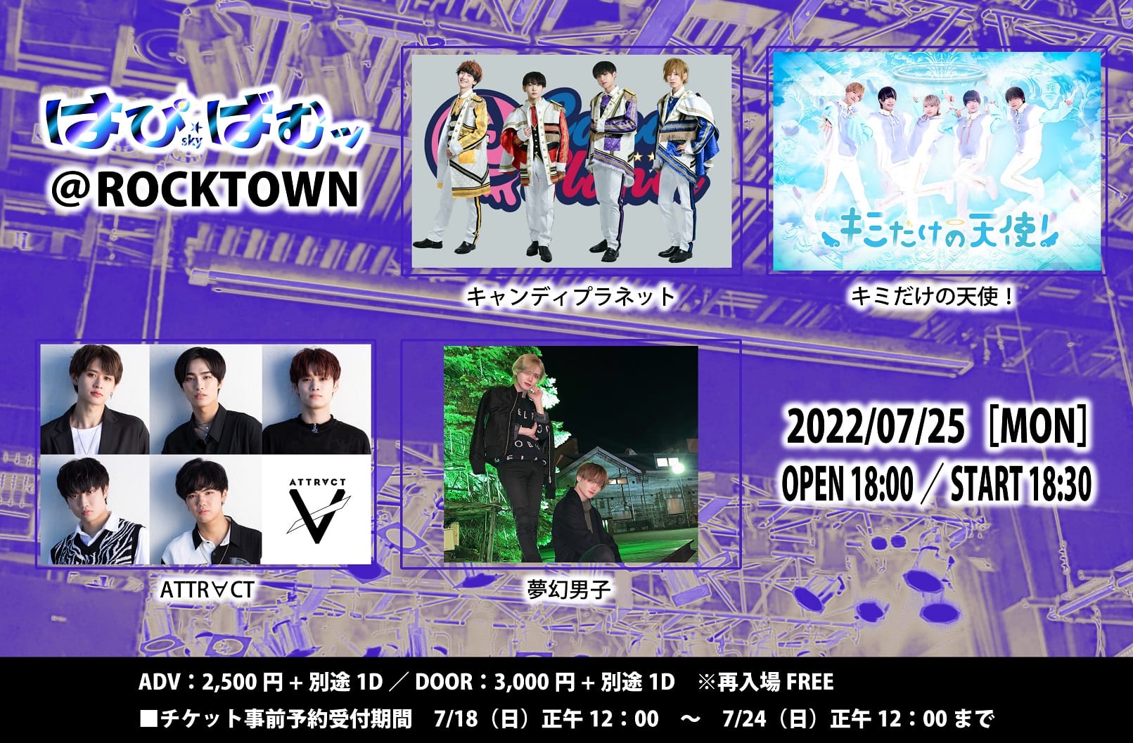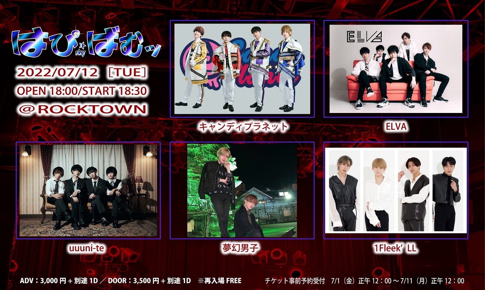 open 18:00 / start 18:30 adv¥3,000 / door \3,500 |