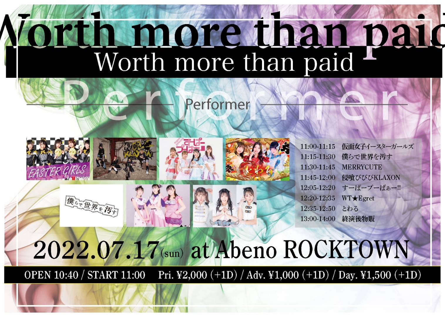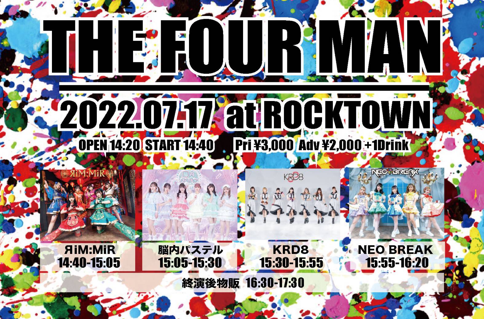 open 16:50 / start 17:20 Sチケット \6,000(特典:定点DVD、集合チェキ券、オフ会参加券(7/31(日)実施予定)) (D別¥600) |