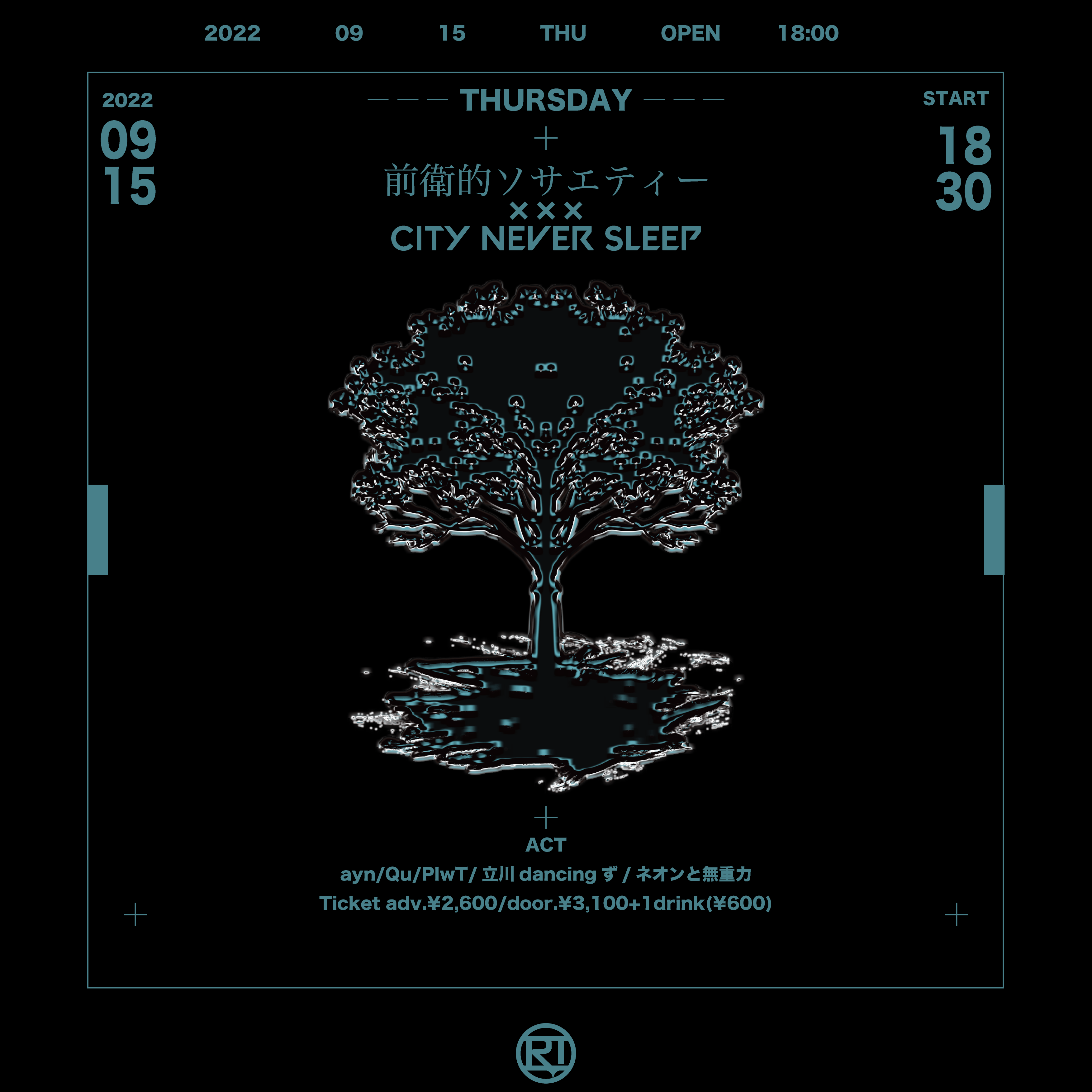 open 18:30 / start 18:45 adv ¥2,000(D別¥600) チケット申し込みURL |