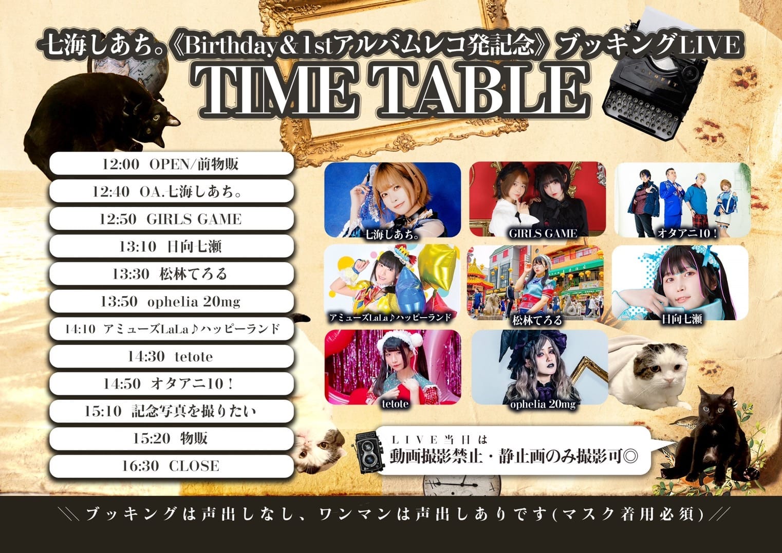 open 18:15 / start 19:00 adv ¥2,500 / door ¥3,000 / カメラ席4席のみ \10,000 |