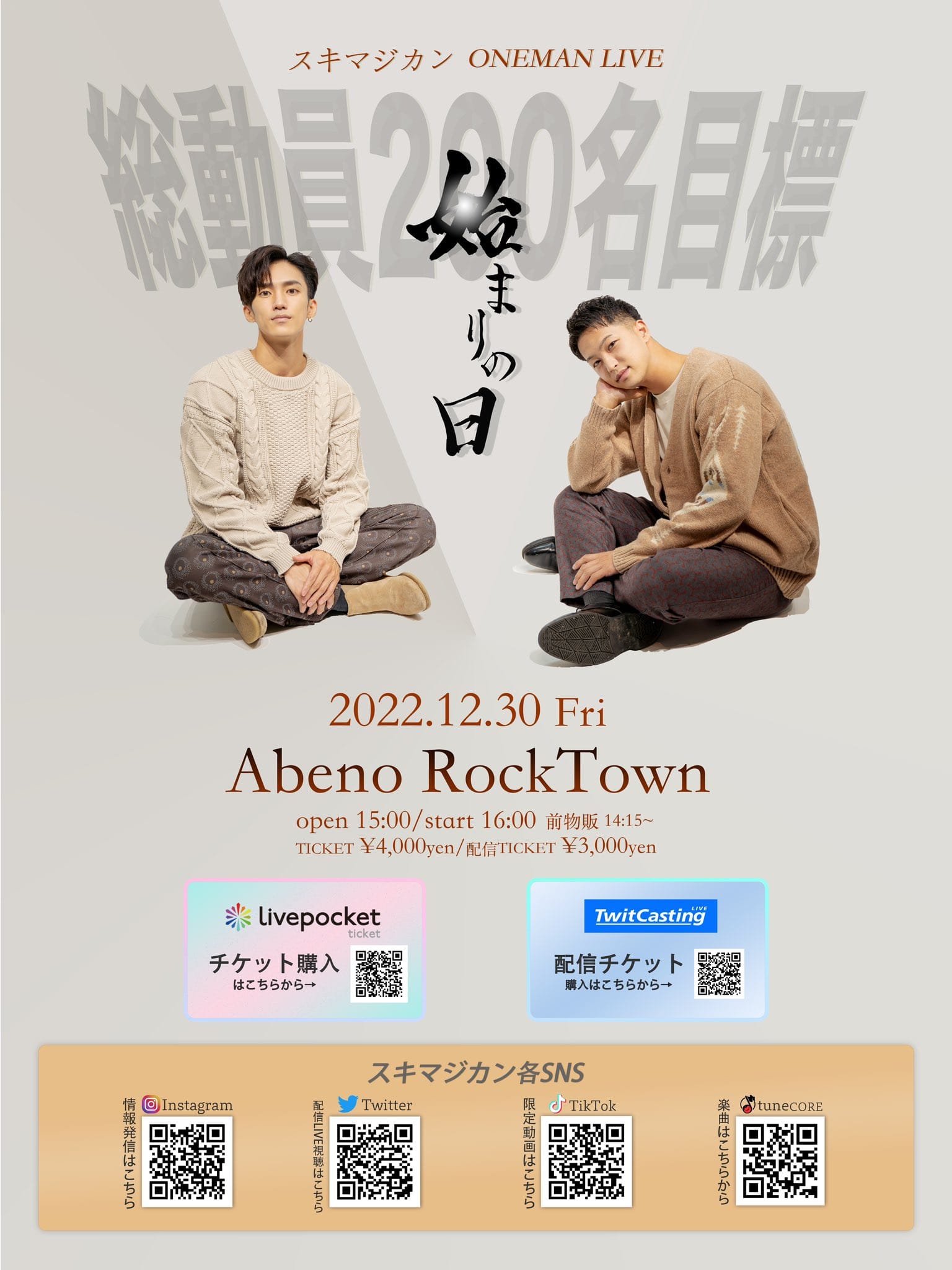 チケット一般発売日:2022年11月28日(月) 20:00〜 ※チケットには限りがございます。 ※購入は先着順となります。 ※当日のご入場順は整理番号順でのご案内となります。