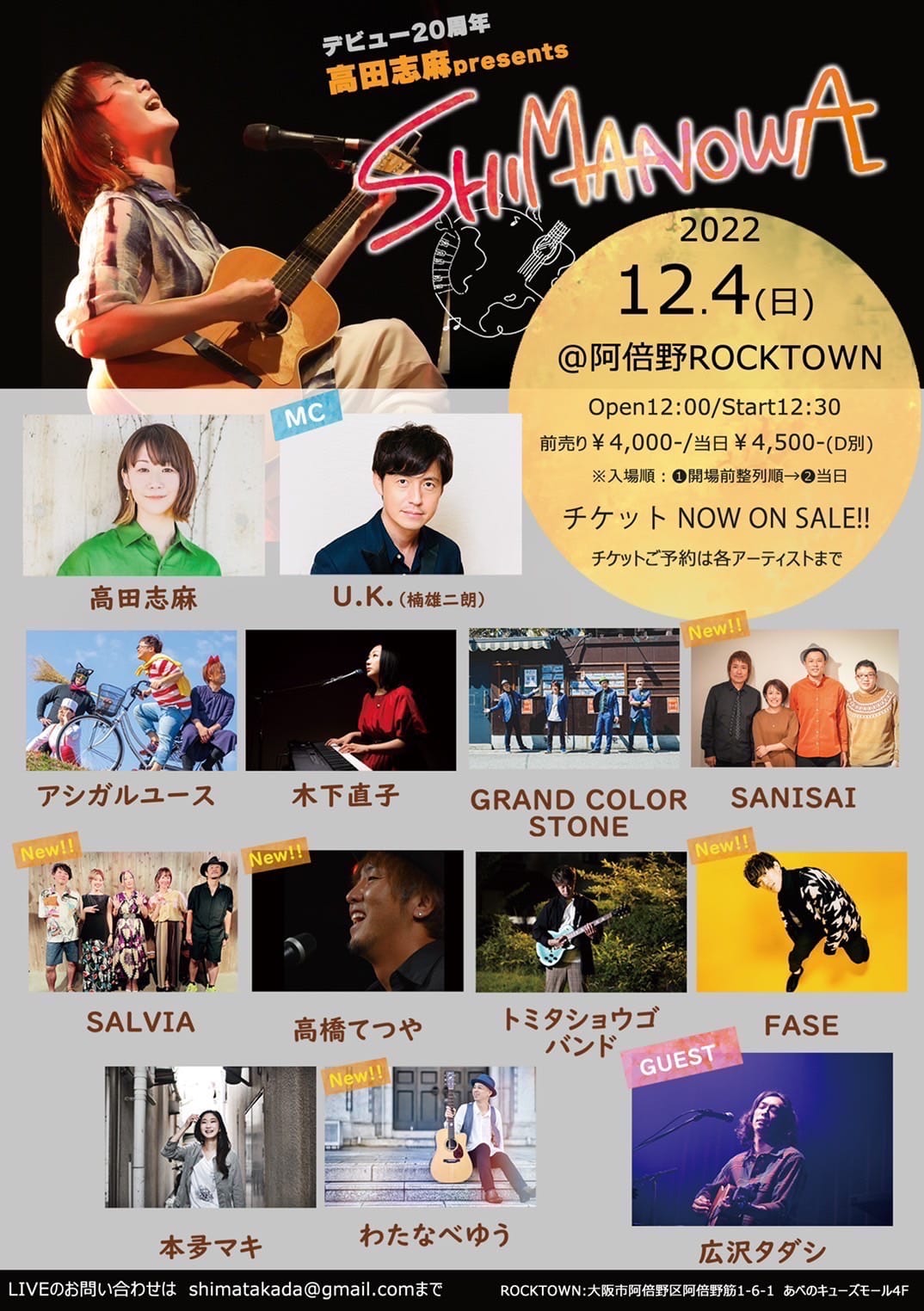 open 12:00 / start 12:40 来場 \2,900 (D別¥600) |