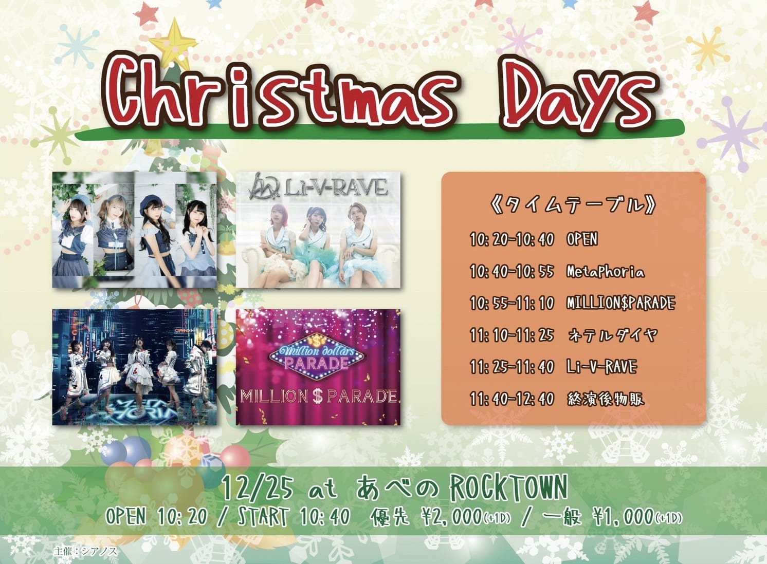 open 10:20 / start 10:55 優先 ¥2,000 / 一般 ¥1,000 |