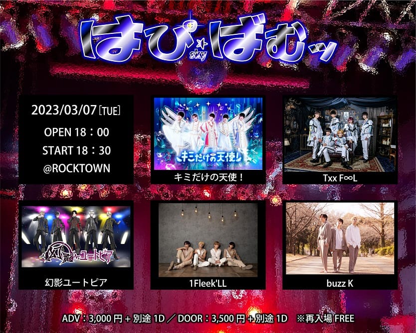 open.18:30 / start. 19:00 adv/door.¥1,000 |