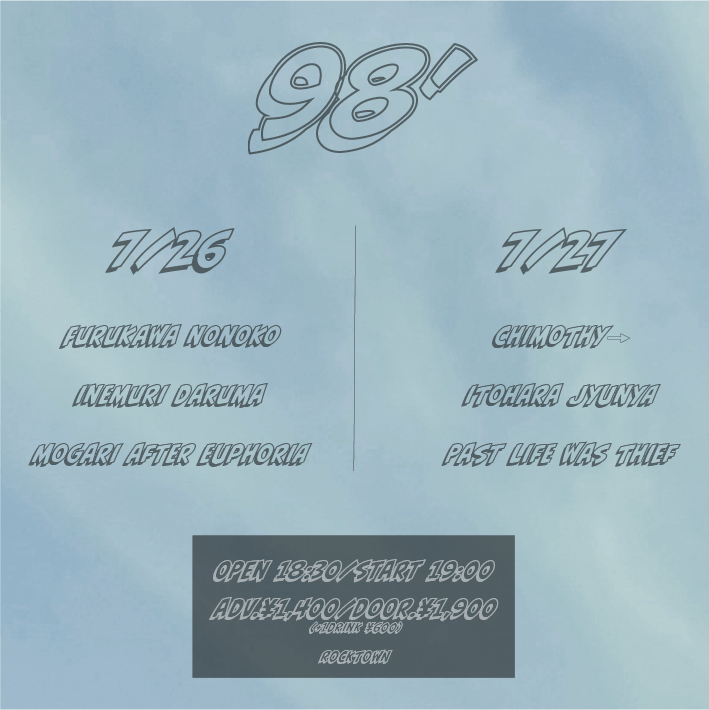 open 12:00 / start 12:30 優先入場¥3,500 / 通常入場 ¥2,000