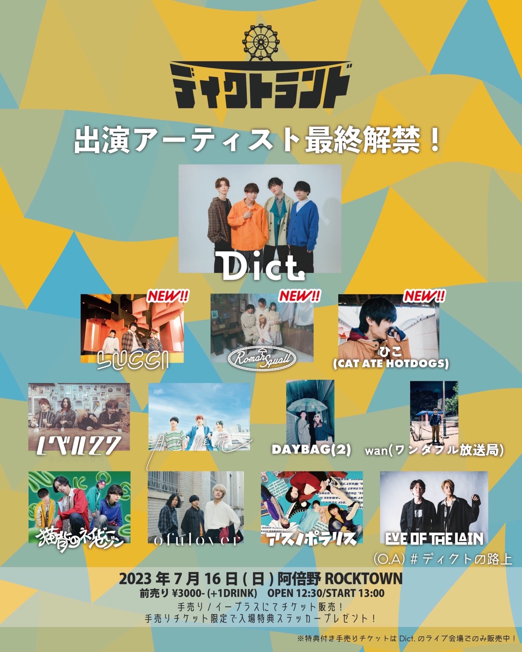 Dict. / アスノポラリス / EVE OF THE LAIN レベル27 / 月と徒花 / DAYBAG(2) / wan(ワンダフル放送局) LUCCI / Romansquall / ひこ(CAT ATE HOTDOGS) |