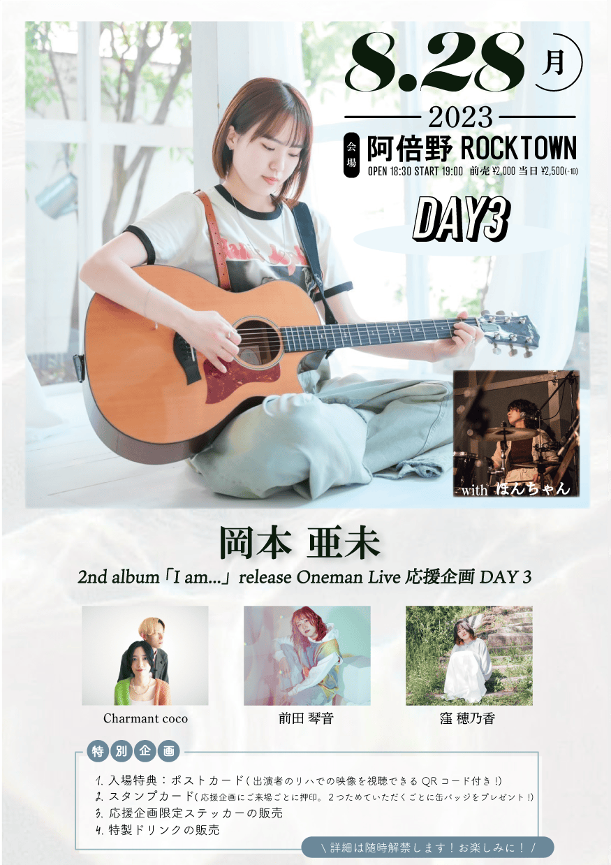 open 19:20 / start 19:40 優先¥2,500 (優先入場+3グループ合同囲みチェキ)/ |