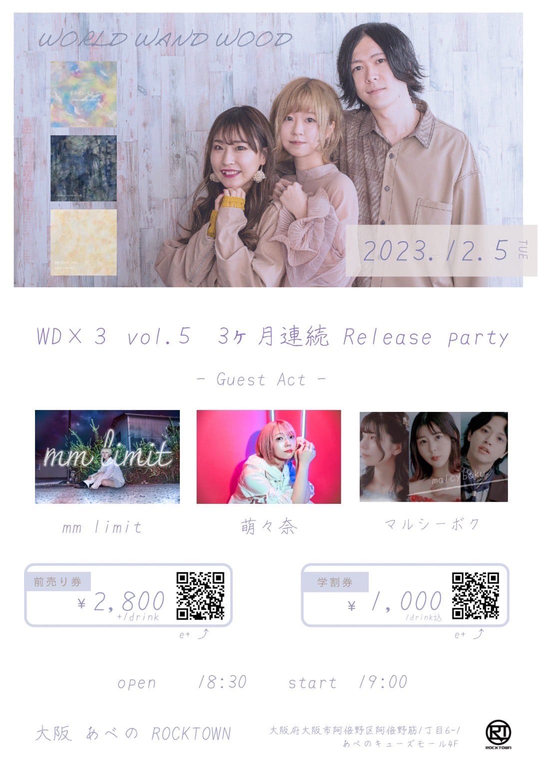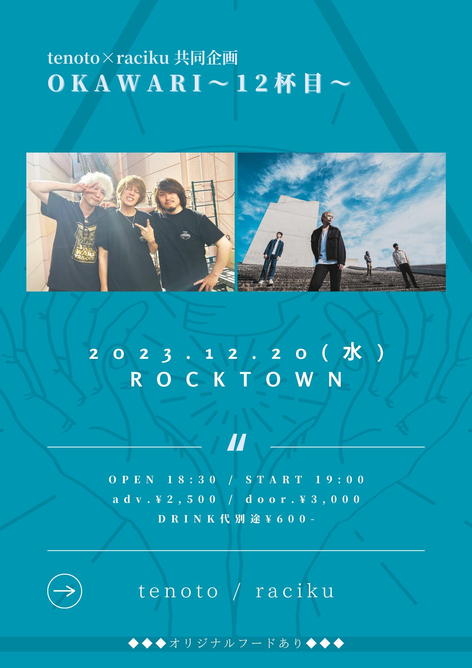 OPEN 17:00 START 17:30 学生¥1,000(要学生証提示) |