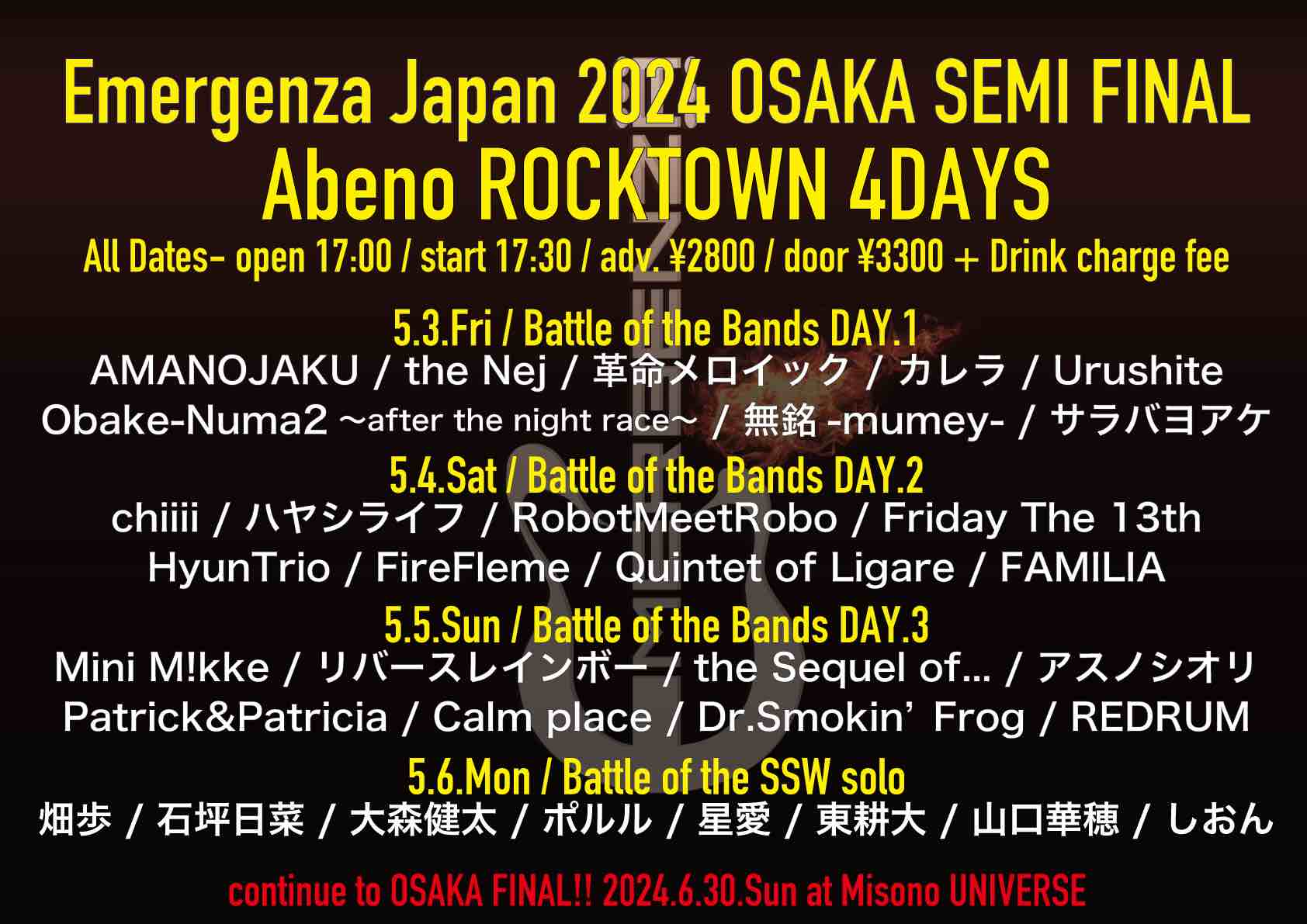 open 17:00 / start 17:30 adv ¥2,800 / door ¥3,300 |