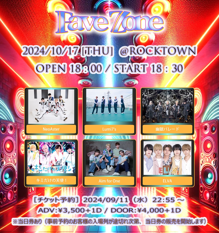 open 17:15/ start 17:45 前方¥4,000 /前方当日 ¥5,000 |