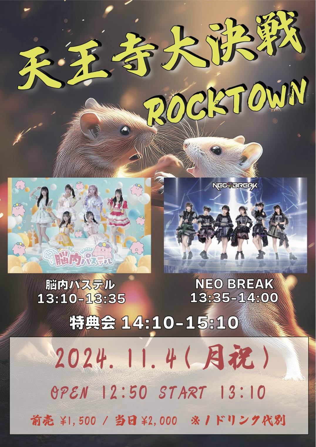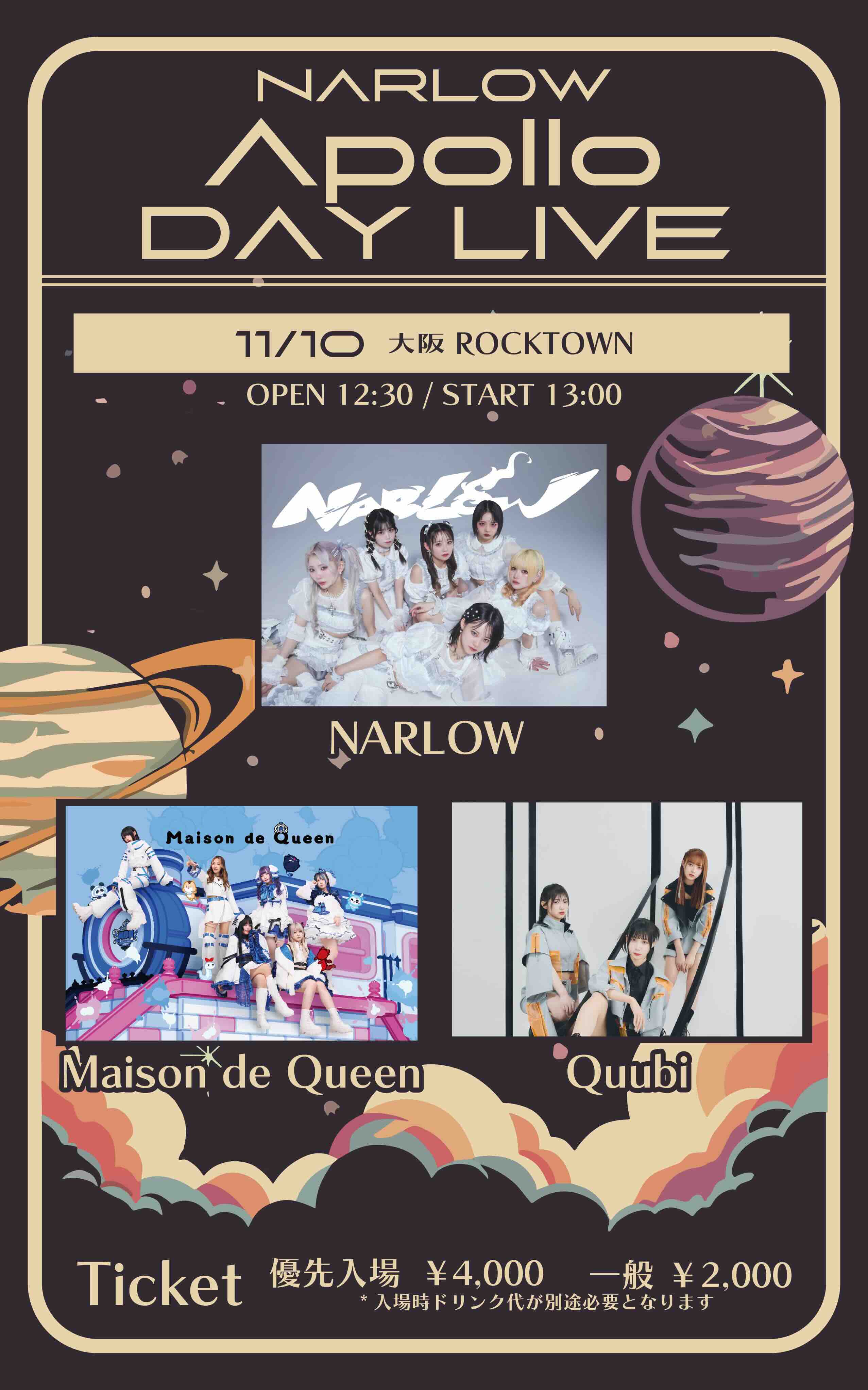 open 10:30 / start 10:50 優先 2,000円/通常500円/当日+500円 |