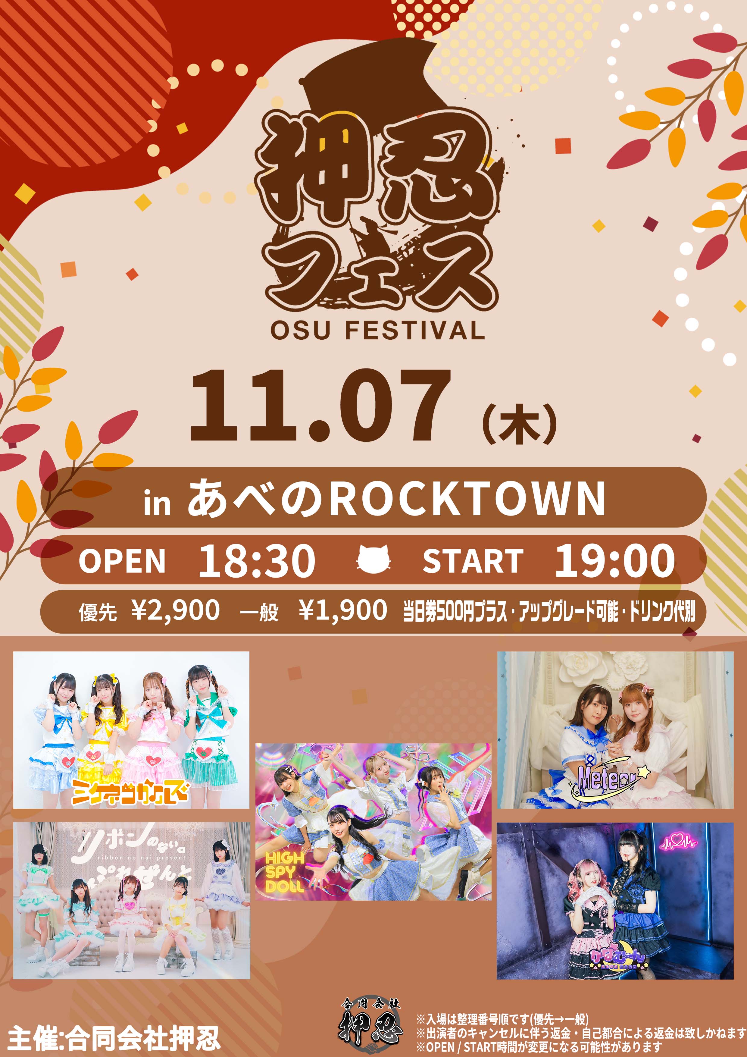 open 16:30 / start 17:00 優先 ¥2,500 / 一般¥500/ |