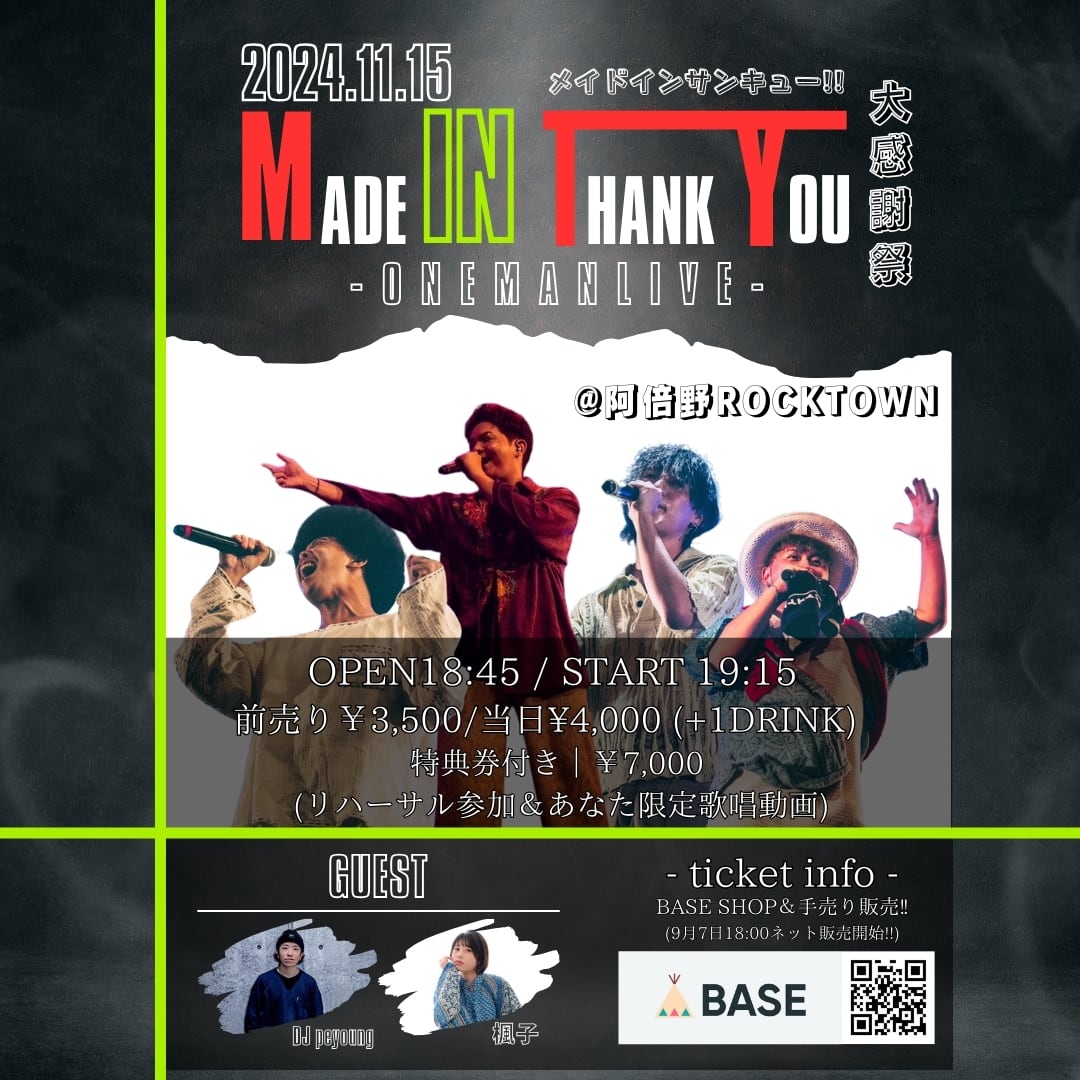 open 12:50 / start 13:10 adv ¥1,500 / door ¥2,000 |