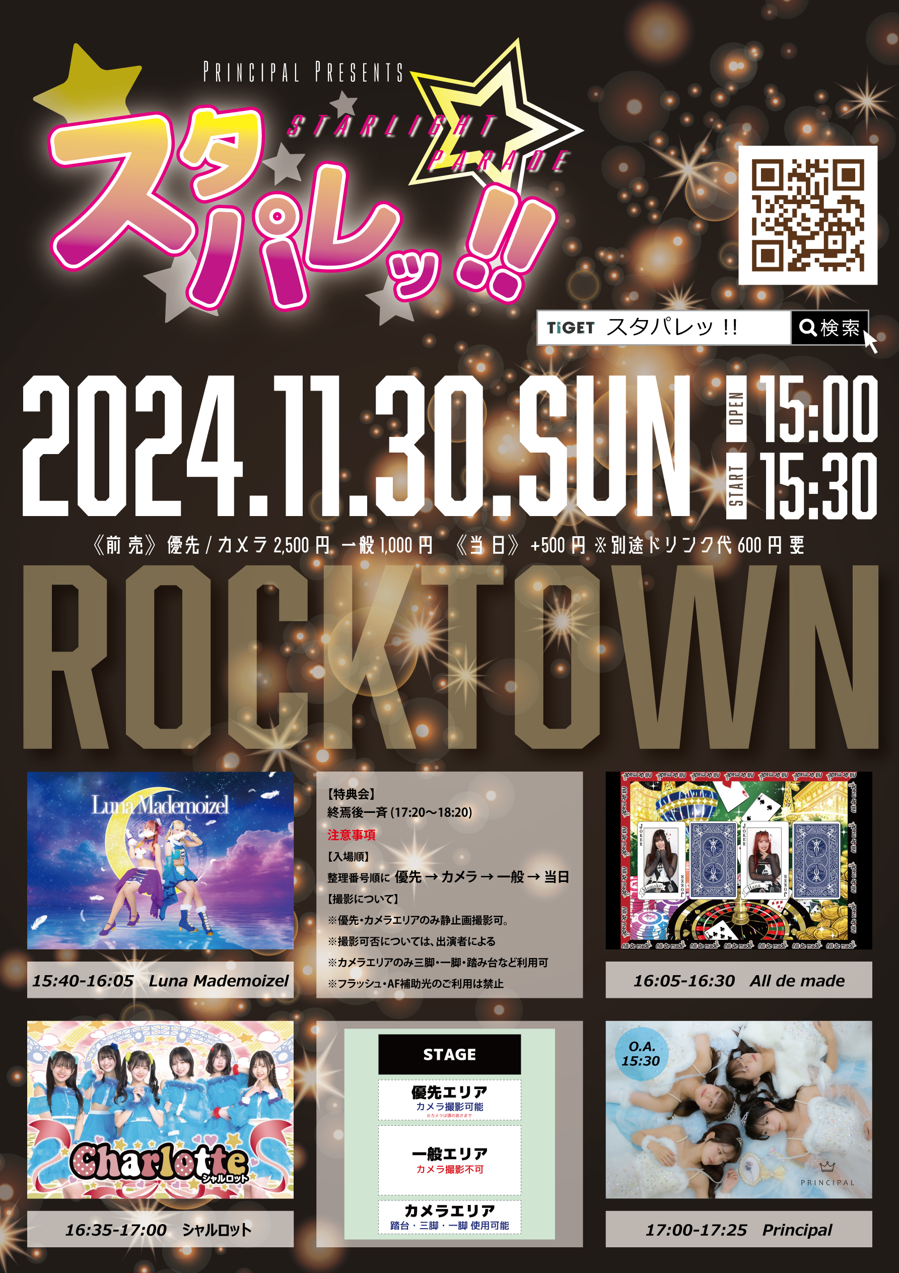 open 15:00 / start 15:30 優先/カメラエリア 2,500円 一般 1,000円 |