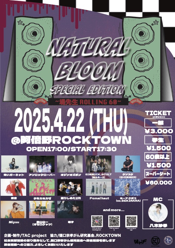 open 17:00 / start 17:30 ⼀般 ¥3,000 学⽣ ¥1,500 (D別¥600) |